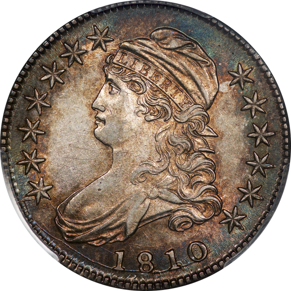 | 1 | 1810 | O.101 | R.1 | PCGS AU 55 | Ex Robinson S. Brown, Jr. and Donald L. Parsley. A well struck, nicely toned 1810 half-dollar. An iridescent ring of copper and turquoise circles the obverse; the reverse is lighter, dominated by pale russet. Spritely luster surrounds the central devices. Dick’s notes indicate that the coin was part of Robbie Brown’s noted collection (as NGC AU 55); Don Parsley acquired it when I sold Brown’s nearly complete die variety set circa 1994. The Scorzafava Collection is dotted with eye-appealing, attractively toned coins. No exception here. Estimate: $1,600 to $2,100. | 2 |
