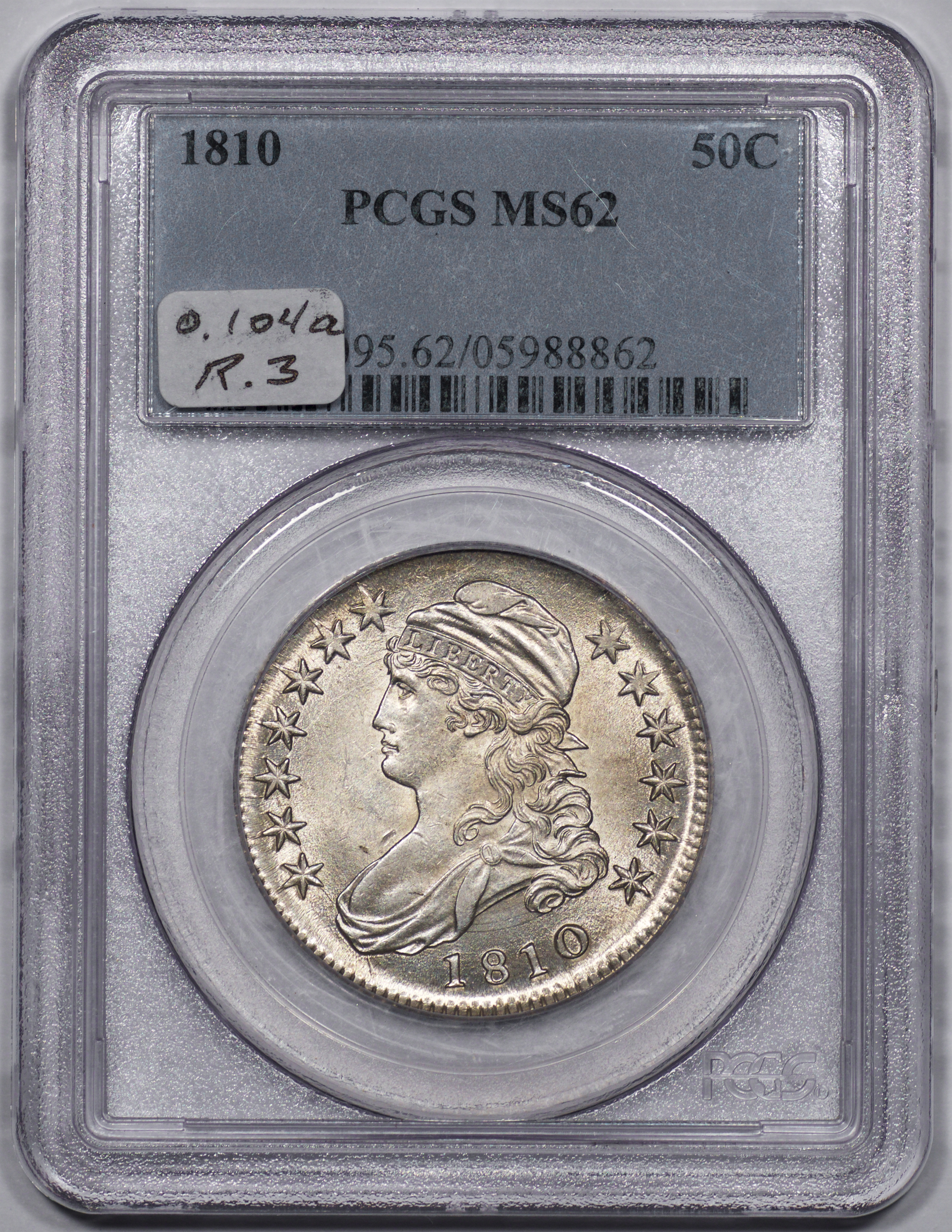 | 53 | 1808 | O.108 | R.3 | PCGS OGH AU 50 | Henry Hilgard, my great friend, mentor and table assistant for over 2 decades, was beloved by all. His bust half-dollars were noted for exceptional eye-appeal and unblemished surfaces. Cleaned or doctored coins were anathema. His capped bust die-variety collection fell short of completion by only a few of the 450 known marriages. When his friend and neighbor Elton Dosier died in 1997, Henry’s numismatic interests shifted. He began to part with his set pieces. This 1808 went to a collecting friend in a private sale. The richly toned surfaces are aglow with underlying luster. The coin has not been submitted to CAC. I should think that a sticker awaits anyone seeking CAC affirmation. Estimate: $1,400 to $1,800. | 11 |