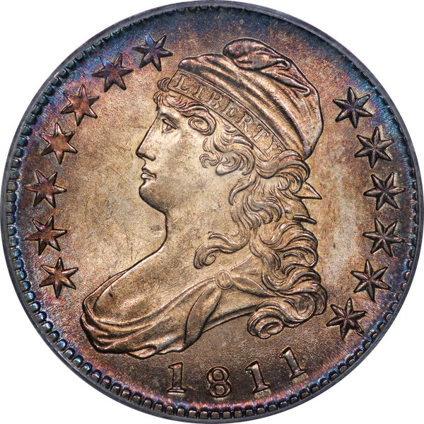 | 4 | 1811 Large 8 | O.104a | R.1 | PCGS MS 62 | Rich sea green toning, familiar to old-timers who stored their coins in kraft envelopes. Legend waxed eloquent when it offered the coin in its auction of February 2016 where Lot 291 earned this panegyric, “Exceptional deep steel blue and russet toning with fiery luster beneath! … A coin with fantastic visual appeal.” Dick prevailed at $3,995. Estimate: $2,800 to $3,400. | 2 |