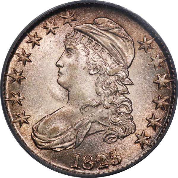 | 20 | 1825 | O.101 | R.1 | PCGS MS 63 | Dick found this on my September 2017 FPL, offered at $2,500 and described as follows. Scintillating luster will grab your eye from across the room. A thin ring of gold encases the dentils. Beautifully impressed, save for hints of weakness at the drapery lines. The surfaces are immaculate. This offering has everything one expects of a choice uncirculated bust half. From the Keith Davignon Collection. Estimate: $2,200 to $2,700. | 2 |