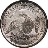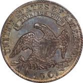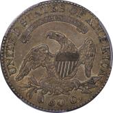 | 51 | 1806/5 | O.104a, T-1 | R.5 | PCGS VF 20 CAC | I do not recall another CAC approved specimen of this rare die pair – in any grade! Unlike the deadly common 1806 over 5 O.101, 102 and 103, the O.104 features a distinct remnant of the underdate within the loop of the 6. The obverse die was used in 1805, on the 1805 O.105 and O.106. All other overdated bust halves were struck on leftover, unused dies from previous years. Of equal interest are the obverse and reverse cuds. Obverse die breaks from star 11 to tip of bust to rim create a retained cud. A full cud has formed over UN on the reverse. (Tompkins Die State 4.) The coin has even, light to medium grey toning. Striking weakness is mandatory since both dies saw extensive use in 1805. Flickers of luster survive around the reverse devices. Circulation ticks are standard for the assigned grade, nothing worth mentioning. Estimate: $1,500 to $2,500 | 1 |