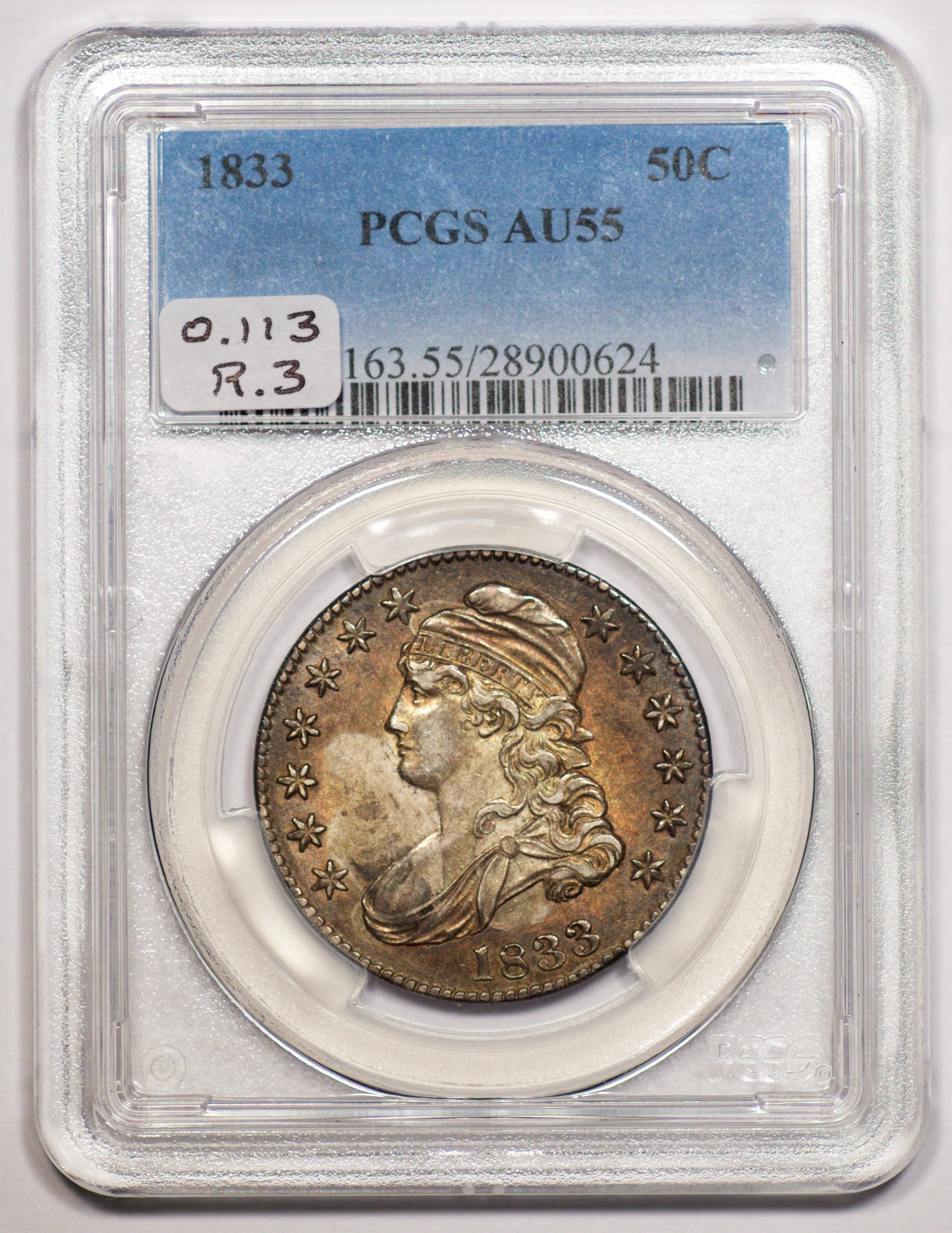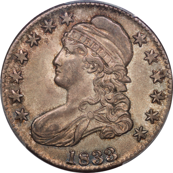 | 1833 | O.113 | R.R.3 | PCGS AU 55 | NEW 12/25. Uneven mix of grey and tan toning, lighter on the reverse. Few signs of actual circulation. | $480 |