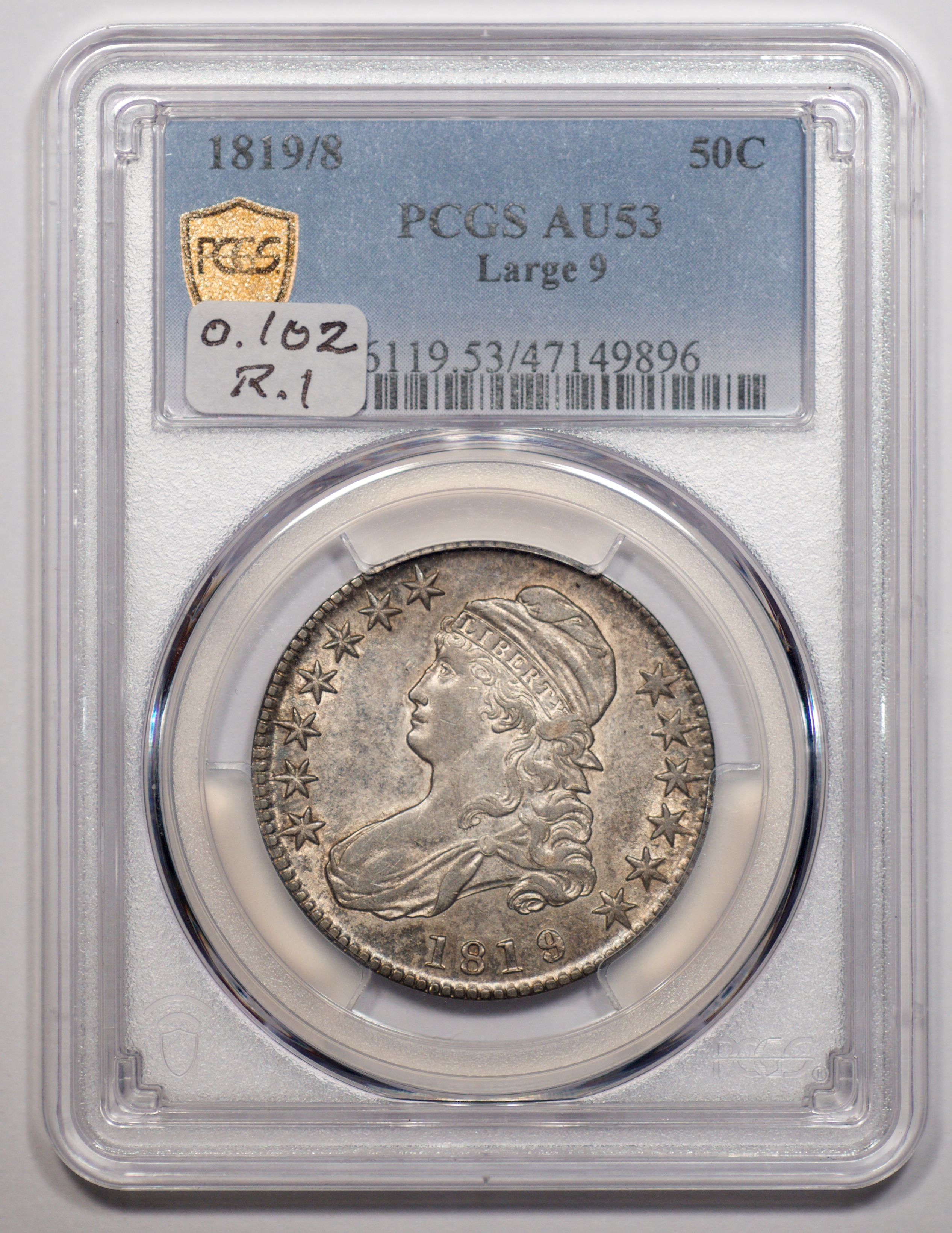 | 1819/8 Large 9 | O.102 | R.1 | PCGS AU 53 | NEW 12/25. Silver-grey with strong luster for the grade. High rims protected this lightly circulated overdate. | $925 |