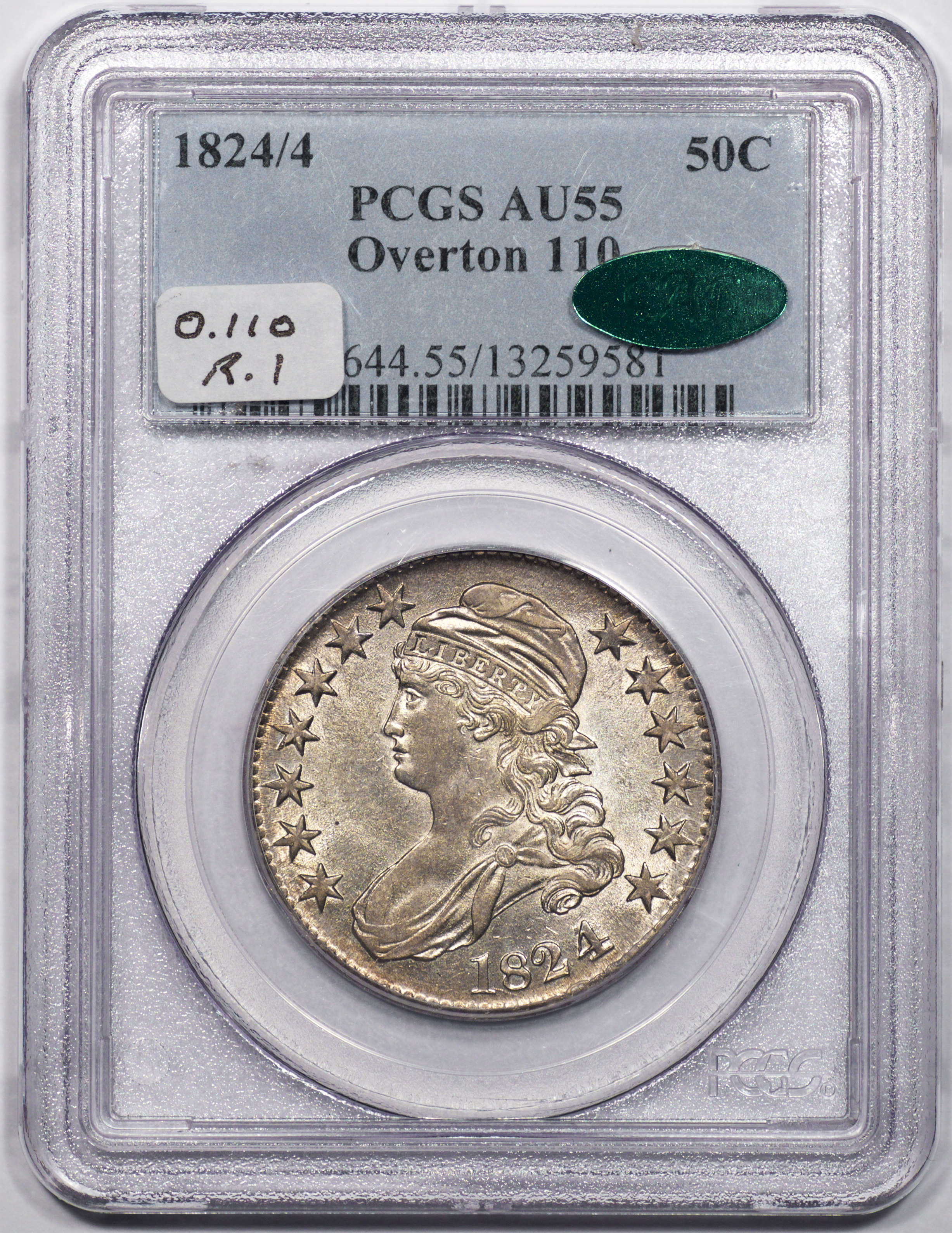 | 1824/4 | O.110 | R.1 | PCGS AU 55 CAC | NEW 12/25. A brilliant, untoned specimen. Bold luster suggests a higher grade and earned this one a CAC sticker. | $1,000 |