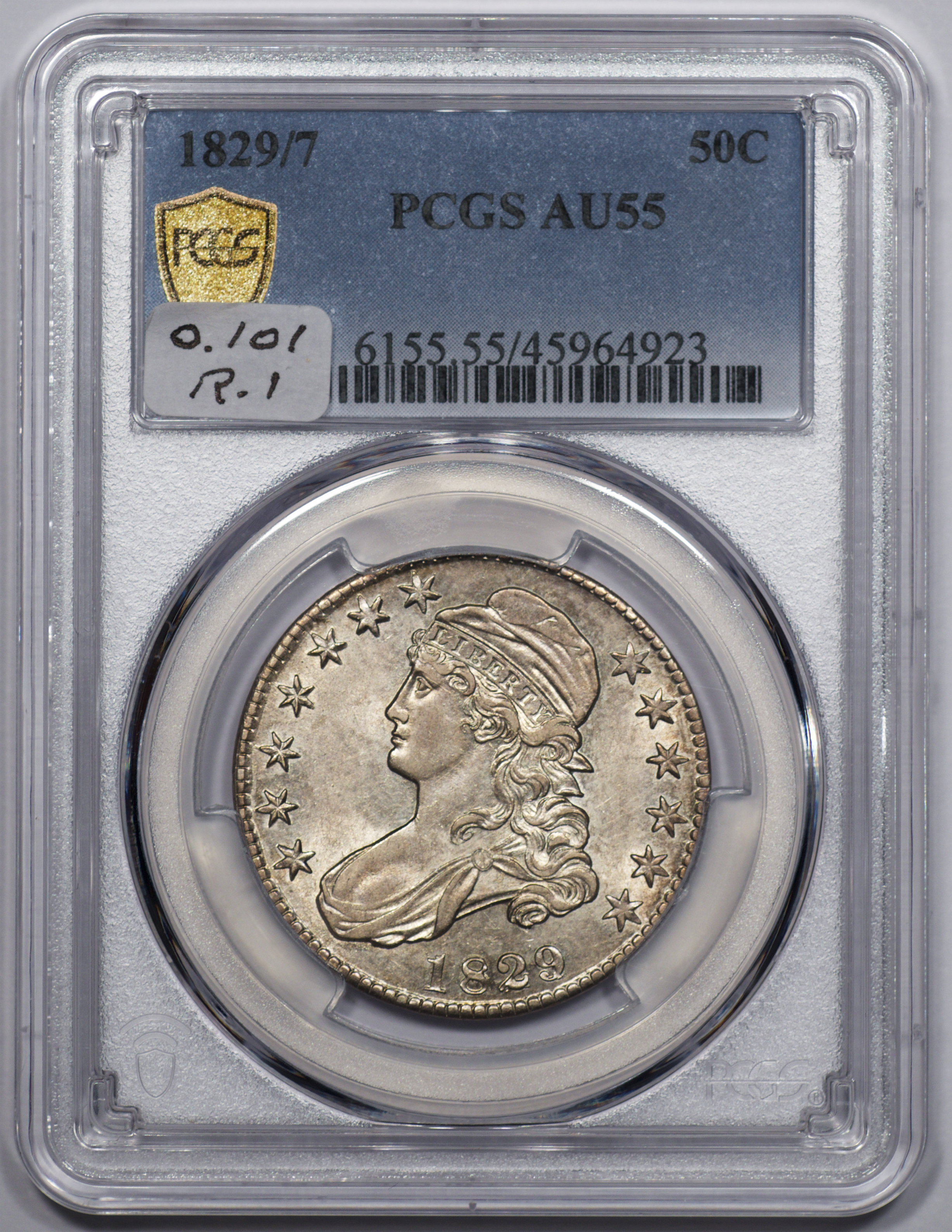 | 1829/7 | O.101 | R.1 | PCGS AU 55 | NEW 12/25. Full luster, save for rub on the cheek, cap and lower drapery. A flashy coin that might have come back from PCGS with a "58" label. | $800 |