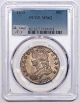 | 1833 | O.108 | R.1 | PCGS MS 62 | A thoroughly original "grey dirt" survivor. Booming luster rolls beneath the protective patina. Well struck to boot. In all, a rock solid mint state coin fit for a top flight date or variety set. | $1,390 |