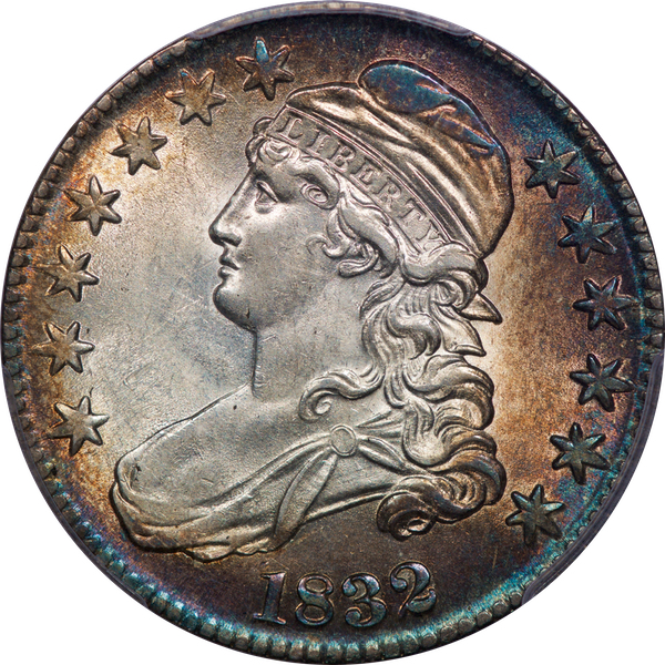 Blasting luster, the stars and right field are decorated with rainbows of album toning. Superb surfaces, nicely impressed central devices, and eye appeal par excellence. From the Davignon collection via your cataloguer’s June 2015 FPL. Est. 1,100 to $1,500.