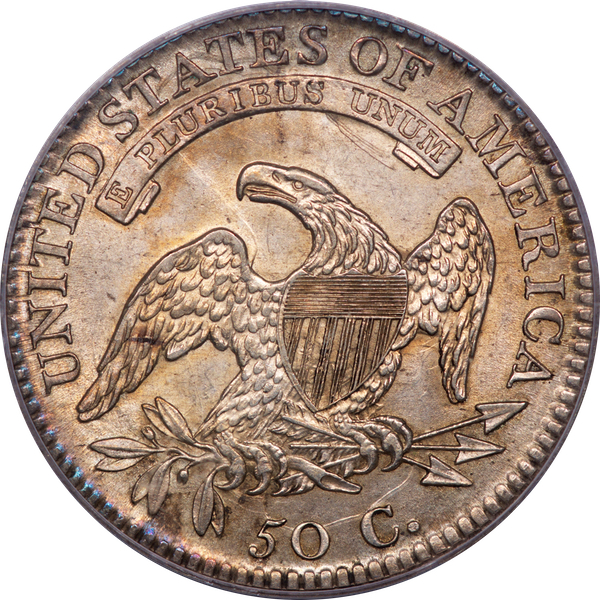 Ex Richard Graham.Satiny luster graces the smooth, lightly toned surfaces. Liberty’s curls are exquisitely detailed. No luster breaks are found on the cheek or elsewhere. Mint state 1813’s are scarce, distinctly more so than bust halves dated 1811 or 1812. Acquired from David Kahn at the 2010 FUN Show; earlier in the collection of Richard Graham. Est. $4,000 to $5,000.