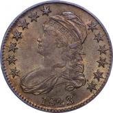 Ex Robinson S. Brown, Jr. A second PCGS AU 58 example of this sought-after variety. Cf. lot 20. The coin was last offered by Heritage in its Dec. 2010 Houston Signature Sale, lot 3645, then in a “fattie” NGC holder and graded MS 62. (I sold the Brown collection in 1995 after having this and other pieces graded by NGC; the NGC labels note the Brown provenance.). An even coat of sunset toning bathes the surfaces. Heritage waxed eloquent, calling the “saturated patina” a “deep peach … with muted blue-green elements.” Whatever. This is a pretty coin, destined for an important die variety, Red Book or Registry Set collection. Please don’t ask where the friction is on this coin. Do ask about using the One-Lot-Only tool, pairing lots 20 and 82. Est. $5,000 and up.