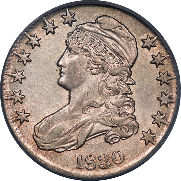 Last seen in Mail Bid Sale No. 34, August 2009, lot 157: A lustrous example of this tough R.4. Dipped a few decades back, now with light grey toning. If you’ve been looking to complete a set of AU 1830s, you know how difficult it is to find this die pair. Tim won the coin for $847. The `30-105 remains a tough die marriage. Note the paucity of listings in Herrman’s AMBPR. Estimate: $500 to $700