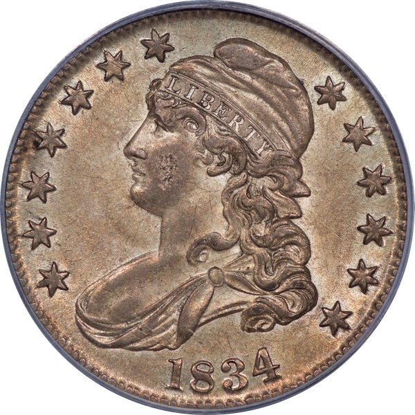 1834 Lg. Dt., Sm. Lets. - O.107 R.1 PCGS AU 55 CAC