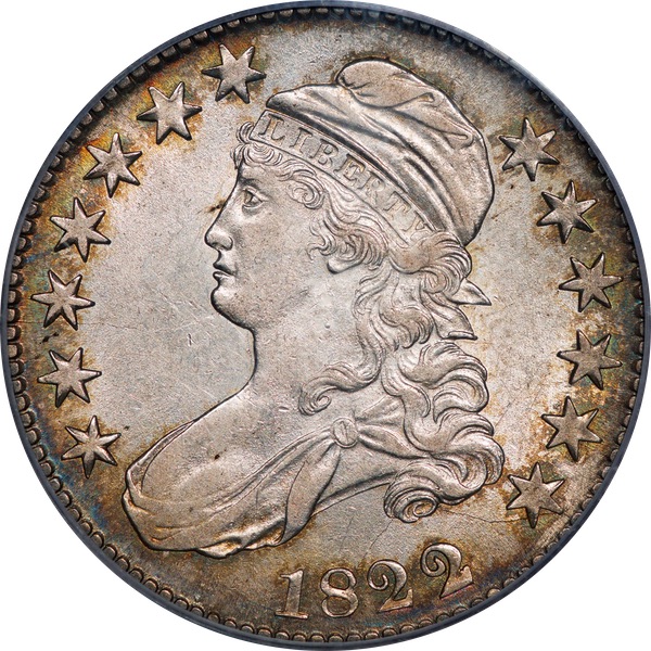 Ex Charlton E. Meyer, Jr. The `22-102 is an extreme rarity in high grade. This example is among the top 5 or 6 known. The Condition Census is headed by the incomparable Norweb coin, NGC MS 63 CAC, offered as part of George Hamilton’s collection in Heritage’s 2016 Anaheim ANA sale. It brought $15,275. I am familiar with two others graded PCGS AU 58. Don Parsley’s example (with obverse die break) appeared in my June 2000 MB 25, lot 16, selling to George Hamilton for $5,506. (Yes, George had the #1 and #2 CC coins.) It brought $8,510 at Heritage’s 2016 ANA sale. Stewart P. Witham also owned a choice AU, graded “58” by PCGS. It brought over $10,000 in Heritage’s auction of August 2010, lot 4881. The early history of the current offering is recounted in the description that appeared in my January 2014 FUN Show sale, MB 38, lot 37.