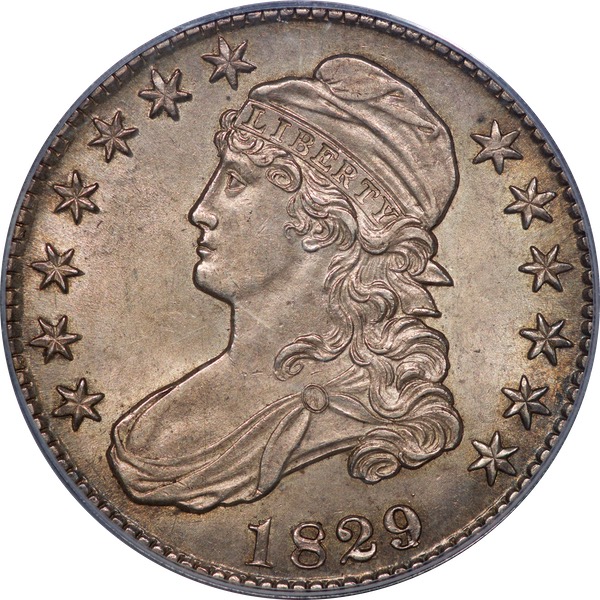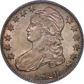 Lightly toned and well-struck for the issue. I’ve never seen an example with all folds in Liberty’s cap. The cartwheel luster is unbroken across the central devices. Smooth surfaces befit a higher grade. From Heritage’s August 2010 ANA auction, lot 4922 at $2,760. Estimate: $2,200 to $2,700