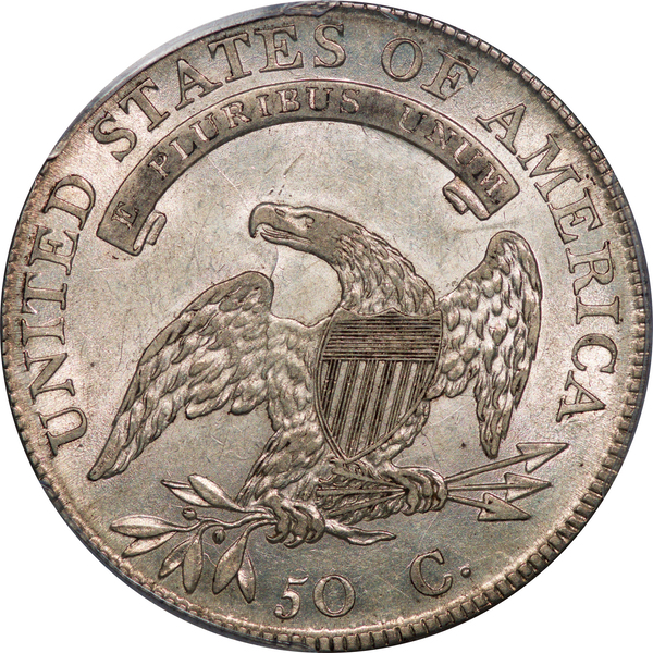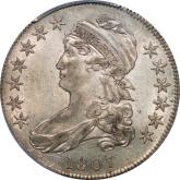 Ex Dell Loy Hansen Cartwheel luster dazzles the eye on this brilliant, untoned specimen. Early die state. The strike is better than average, showing slight softness in the curls and drapery lines. Friction is confined to the high points. In all, a virtual twin to the PCGS AU 58 example offered in MB 51, Feb. 2021, lot 3 @ $14,912. The Osborne coin comes from the celebrated collection of Utah businessman Dell Loy Hansen. Legend offered it in its May 2019 sale, where lot 314 brought $9,400 – a steal in your cataloguer’s estimation. Tim acquired it shortly thereafter in a private transaction with David Lawrence R.C. For many bust half devotees this 1807 would be the crowing jewel in his or her collection.
