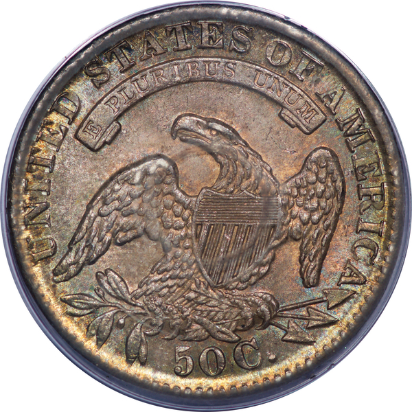 A 4th rattler from the Brelsford Collection! The holder, not the coin, has suffered from the less than firm hold on its captive. Note the circles of haze, obverse and reverse, on the inside surface of the capsule. The coin is magnificent -- beautifully toned, original and dripping with luster. The late die state accounts for drawn stars and indistinct dentils. (Pre CAC photo of slab.)