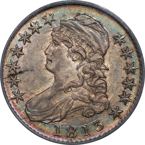 Antique grey with golden highlights. Short drift mark between stars 2 and 3. A charming, original coin that has held a place in Davignon’s die variety set since he acquired it (raw) in 1985.