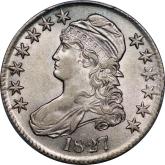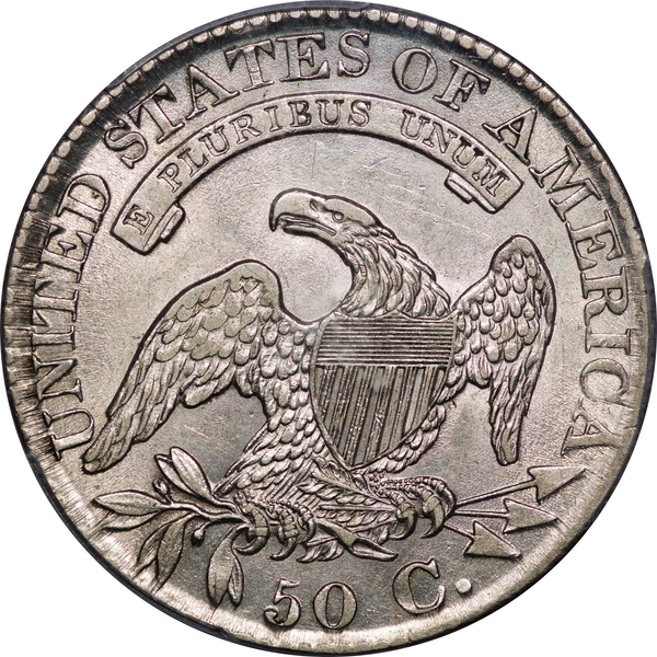 Ex Floyd Farley and Charlton Meyer Brilliant and untoned with nice surfaces and way too much luster for a “53.” It became Charlton Meyer’s set piece after he acquired it from Floyd Farley at the August 1975 ANA Convention in Los Angeles. Farley, newcomers should know, was cofounder of the Bust Half Nut Club and the first to assemble a complete set of capped bust halves by Overton variety, including a choice VF 1817/4. He dipped his coins (“I want to see what’s there,” he explained) then stored them in paper envelopes. The Meyer provenance is noted on the PCGS label.